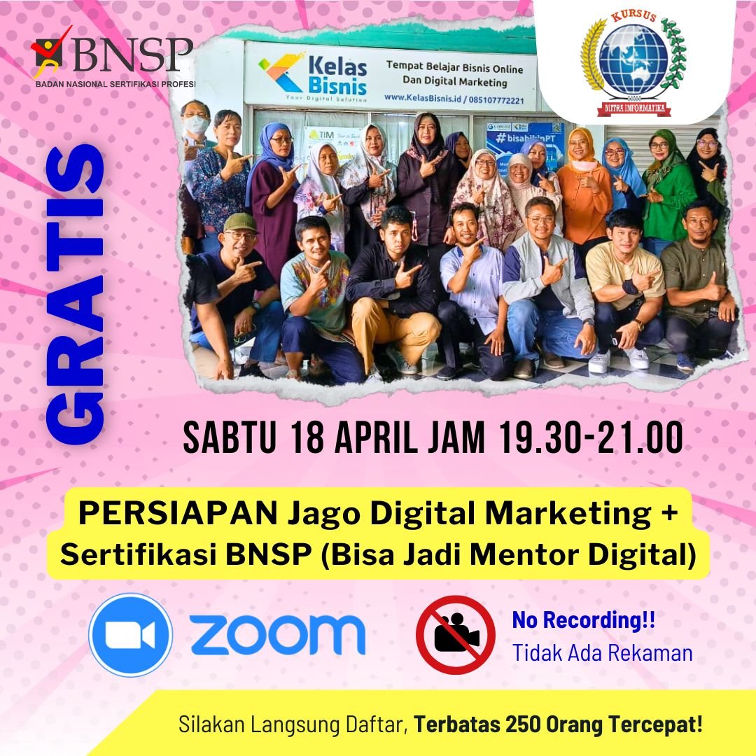 Persiapan JAGO BISNIS dan DIGITAL, serta Sertifikasi BNSP. Zoominar Gratis!!